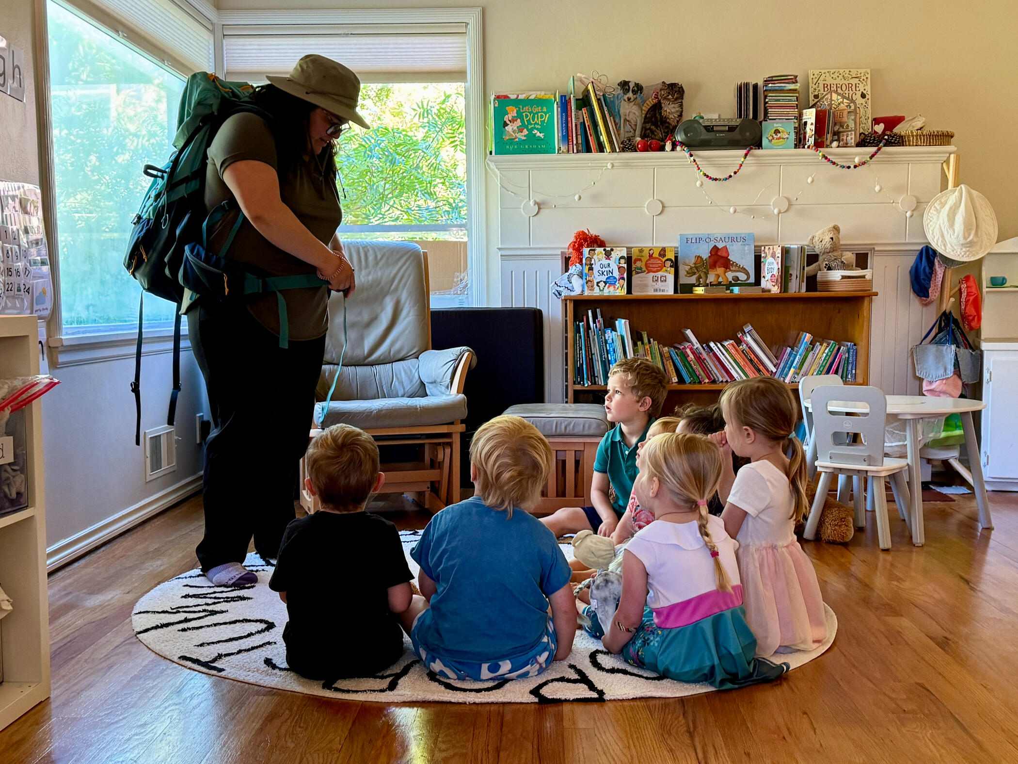 Our daily rhythm gives children the comfort of routine with plenty of room for discovery. Each day is a mix of play, connection, and exploration — all in a warm, home-based environment where toddlers and preschoolers can learn at their own pace.
