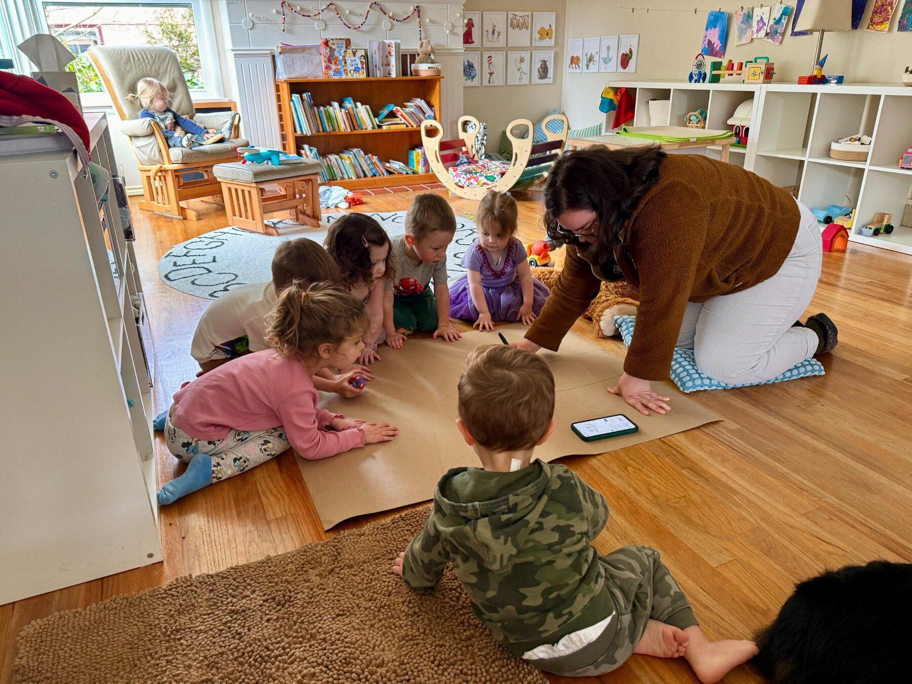 Our daily rhythm gives children the comfort of routine with plenty of room for discovery. Each day is a mix of play, connection, and exploration — all in a warm, home-based environment where toddlers and preschoolers can learn at their own pace.